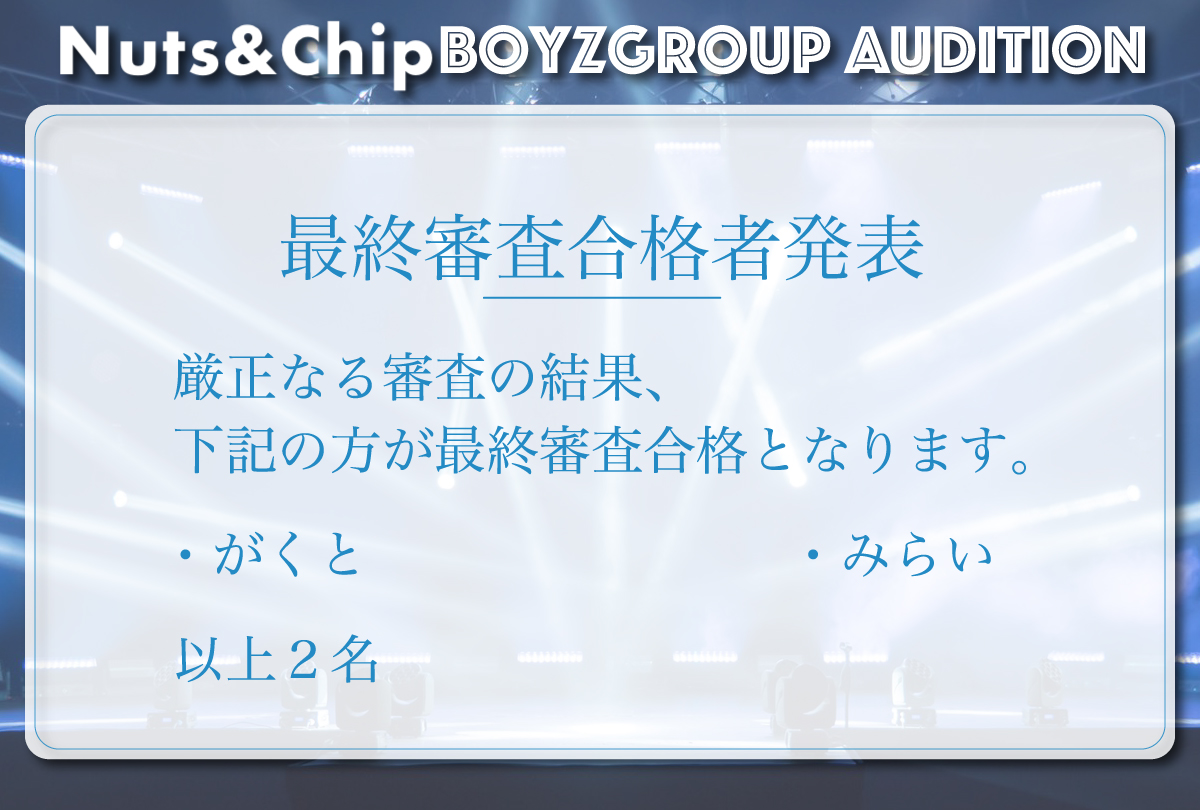 Nuts&Chip新規ボーイズグループオーディション合格発表