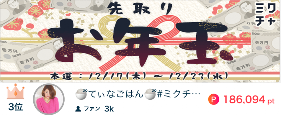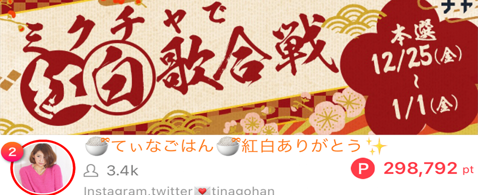 🍚てぃなごはん🍚がミクチャで紅白歌合戦赤組で2位になりました🥈✨ 🍚てぃなごはん🍚がミクチャで紅白歌合戦赤組で2位になりました🥈✨ 応援してくださったリスナーの皆さん、ありがとうございました🥈🥈🎤🎉 2021.1.1