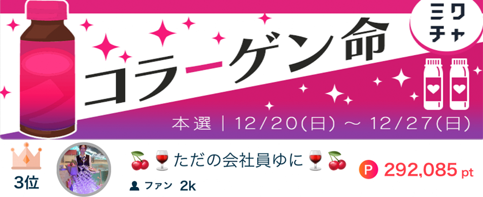 🍒🍷ただの会社員ゆに🍷🍒がコラーゲン命で3位になりました🥉🎉 🍒🍷ただの会社員ゆに🍷🍒がコラーゲン命で3位になりました🥉🎉 応援してくださったリスナーの皆さん、ありがとうございました🥳 2020.12.27