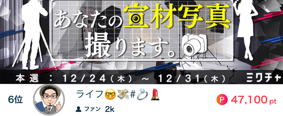 ライフ🤓💸があなたの宣材写真撮ります。で6位になりました🌈 ライフ🤓💸があなたの宣材写真撮ります。で6位になりました🌈 応援してくださったリスナーの皆さん、ありがとうございました📸 2020.12.31