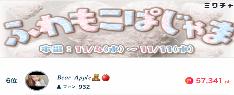 BearApple🧸🍎がふわもこぱじゃまで6位になりました🍂✨ BearApple🧸🍎がふわもこぱじゃまで6位になりました🍂✨ 応援してくださったリスナーの皆さん、ありがとうございました☁️❗️❗️ 2020.11.11