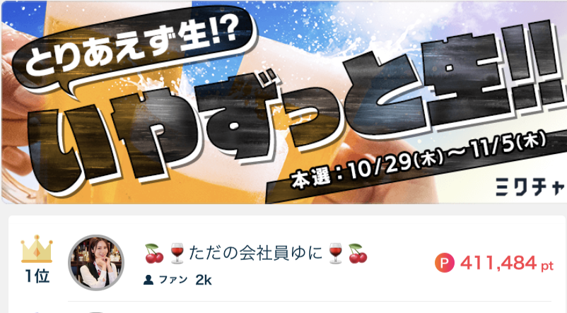 🍒🍷ただの会社員ゆに🍷🍒がとりあえず生!?いやずっと生!!で1位になりました🥇✨ 🍒🍷ただの会社員ゆに🍷🍒がとりあえず生!?いやずっと生!!で1位になりました🥇✨ 応援してくださったリスナーの皆さん、ありがとうございました🍻 2020.11.5
