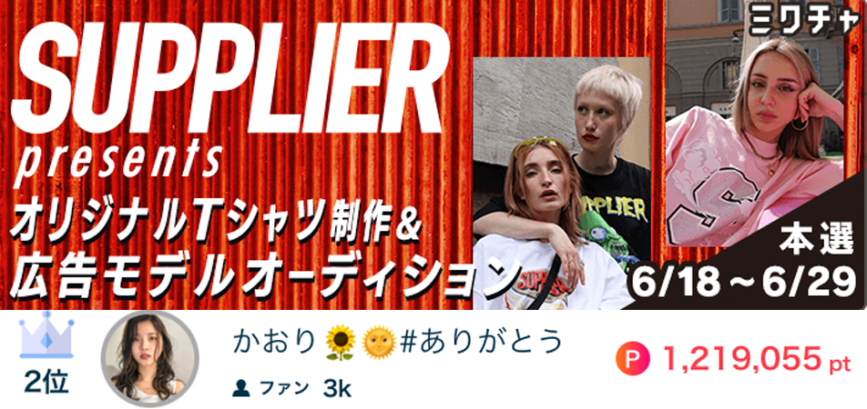 かおり🌻🌞がSUPPLIERpresentsオリジナルTシャツ制作&広告モデルオーディション で2位になりました🥈👕 かおり🌻🌞がSUPPLIERpresentsオリジナルTシャツ制作&広告モデルオーディション で2位になりました🥈👕 応援してくださったリスナーの皆さん、ありがとうございました🥳 2021.6.29