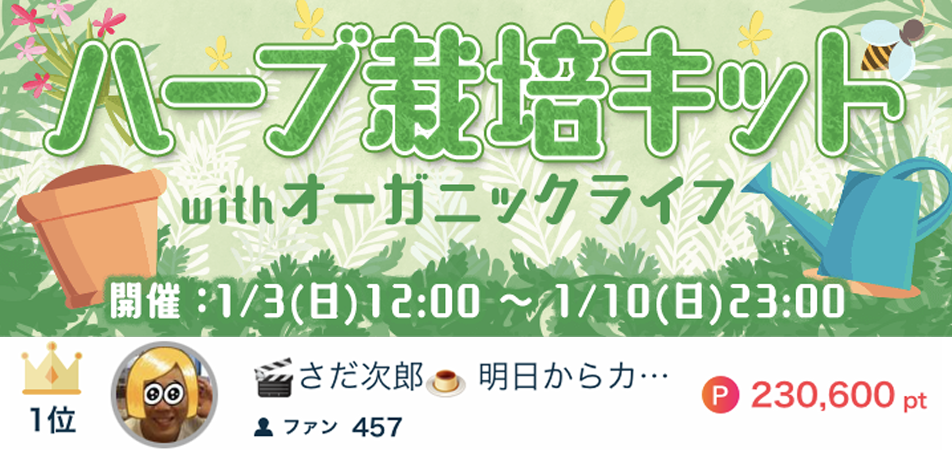 🎬さだ次郎🍮がハーブ栽培キットwithオーガニックライフで1位になりました🥇🌿 🎬さだ次郎🍮がハーブ栽培キットwithオーガニックライフで1位になりました🥇🌿 応援してくださったリスナーの皆さん、ありがとうございました🎉🎉 2021.1.10
