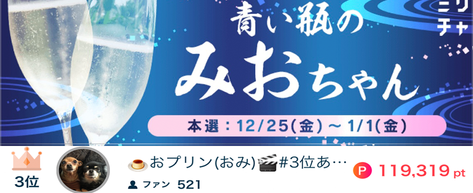 🍮おプリン(おみ)🎬が青い瓶のみおちゃんで3位になりました🥉✨ 🍮おプリン(おみ)🎬が青い瓶のみおちゃんで3位になりました🥉✨ 応援してくださったリスナーの皆さん、ありがとうございました🍶 2021.1.1