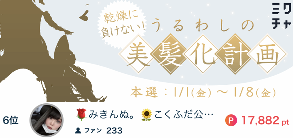 🌹みきんぬ。🌻こくふだ公認MG🌹がうるわしの美髪化計画で6位になりました🏅✨ 🌹みきんぬ。🌻こくふだ公認MG🌹がうるわしの美髪化計画で6位になりました🏅✨ 応援してくださったリスナーの皆さん、ありがとうございました💖 2021.1.8