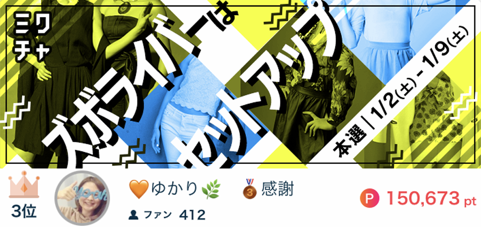 🧡ゆかり🌿がズボライバーはセットアップで3位になりました🥉✨ 🧡ゆかり🌿がズボライバーはセットアップで3位になりました🥉✨ 応援してくださったリスナーの皆さん、ありがとうございました🥳❣️ 2021.1.9