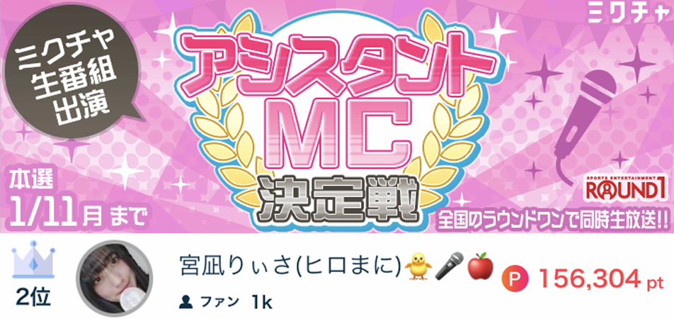 宮凪りぃさ(ヒロまに)🐥🎤🍎がアシスタントMC決定戦で2位になりました🥈🥳 宮凪りぃさ(ヒロまに)🐥🎤🍎がアシスタントMC決定戦で2位になりました🥈🥳 応援してくださったリスナーの皆さん、ありがとうございました🌈 2021.1.11