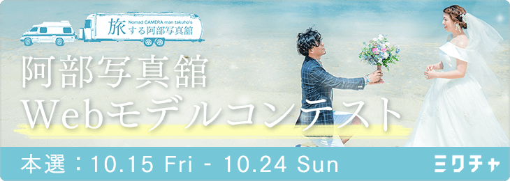 本日募集開始!阿部写真舘Webモデルコンテスト 阿部写真舘Webモデルコンテスト開催決定! 一生に一度のフォトウエディングを残すサービスを提供する『旅する阿部写真舘』のWebモデルになれるチャンス✨ 撮影は東京・名古屋・大阪から選べる他、交通費支給*もあるため全国から […] 2021.10.6