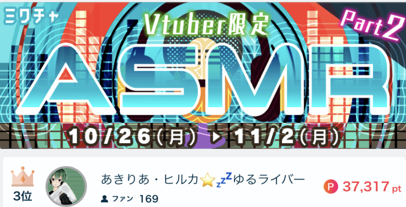 あきりあ・ヒカル⭐️💤ゆるライバーがVTuber限定ASMR(part2)で3位になりました🥉✨ あきりあ・ヒカル⭐️💤ゆるライバーがVTuber限定ASMR(part2)で3位になりました🥉✨ 応援してくださったリスナーの皆さん、ありがとうございました🖥 2020.11.2