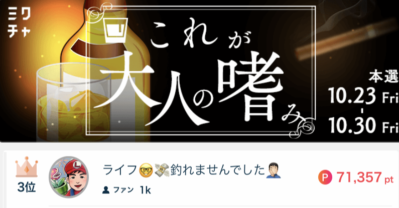 ライフ🤓💸釣れませんでした🤦🏻♂️がこれが大人の嗜みで3位になりました🥉✨ ライフ🤓💸釣れませんでした🤦🏻♂️がこれが大人の嗜みで3位になりました🥉✨ 応援してくださったリスナーの皆さん、ありがとうございました🍷 2020.10.30