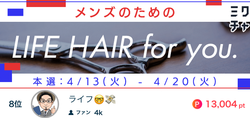 ライフ🤓💸がLIFE HAIR for you.で8位になりました🎖🤵 ライフ🤓💸がLIFE HAIR for you.で8位になりました🎖🤵 応援してくださったリスナーの皆さん、ありがとうございました🥳 2021.4.20