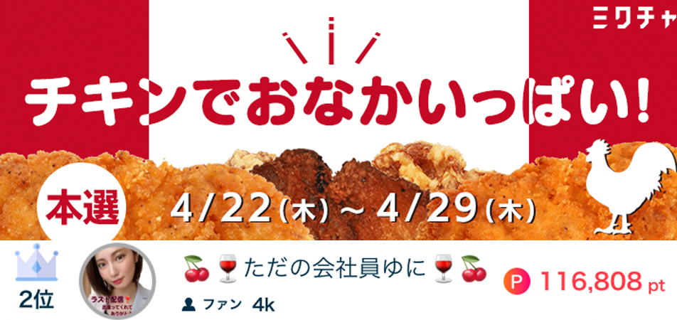 🍒🍷ただの会社員ゆに🍷🍒がチキンでおなかいっぱい!で2位になりました🥈🐔 🍒🍷ただの会社員ゆに🍷🍒がチキンでおなかいっぱい!で2位になりました🥈🐔 応援してくださったリスナーの皆さん、ありがとうございました❣️ 2021.4.29