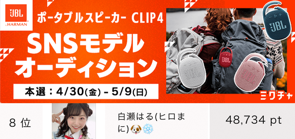 白瀬はる(ヒロまに)がポータブルスピーカーCLIP4 SNSモデルオーディションで8位になりました🎖🎧 白瀬はる(ヒロまに)がポータブルスピーカーCLIP4 SNSモデルオーディションで8位になりました🎖🎧 応援してくださったリスナーの皆さん、ありがとうございました💖 2021.5.9