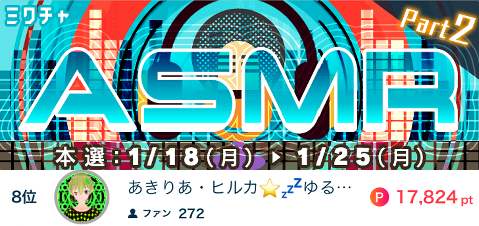 あきりあ・ヒルカ⭐️💤がAXMR Part2で6位になりました🏅🥳 あきりあ・ヒルカ⭐️💤がAXMR Part2で6位になりました🏅🥳 応援してくださったリスナーの皆さん、ありがとうございました🎶🎧 2021.1.25