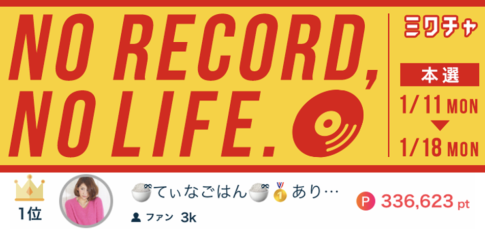 🍚てぃなごはん🍚がNO RECORD,NO LIFE.で1位になりました💖 🍚てぃなごはん🍚がNO RECORD,NO LIFE.で1位になりました💖 応援してくださったリスナーの皆さん、ありがとうございました🎹🎶 2021.1.18